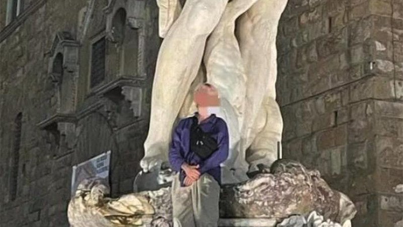 Daños en monumento: turista se sube a estatua de Neptuno en Florencia para fotografía