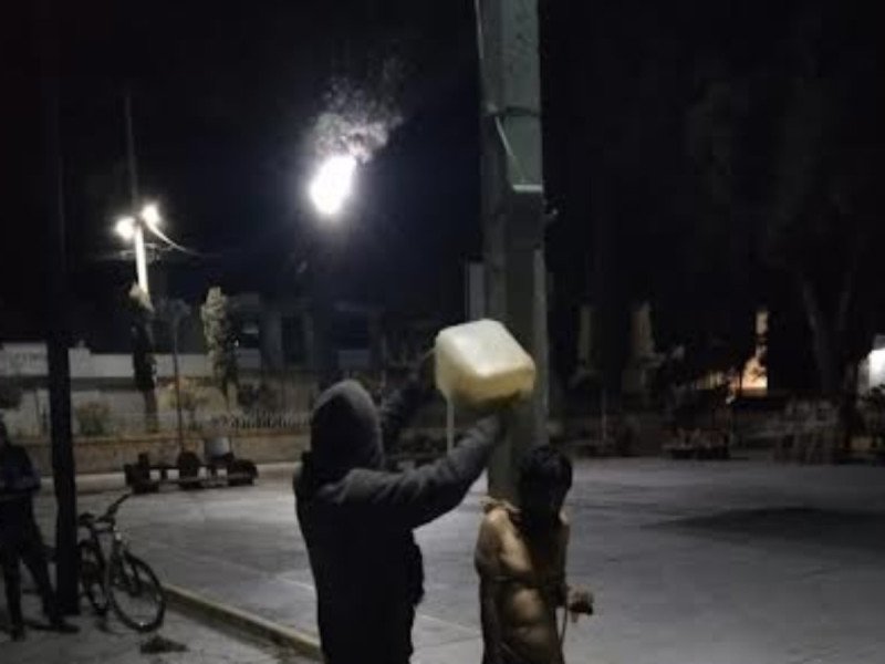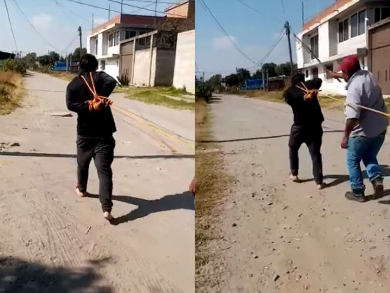 Pobladores desnudan a ladrón, lo atan a poste y le rocían gasolina