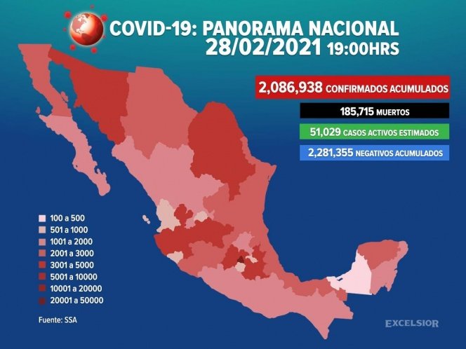 Suman 2,086,938 los casos positivos de covid-19 en México